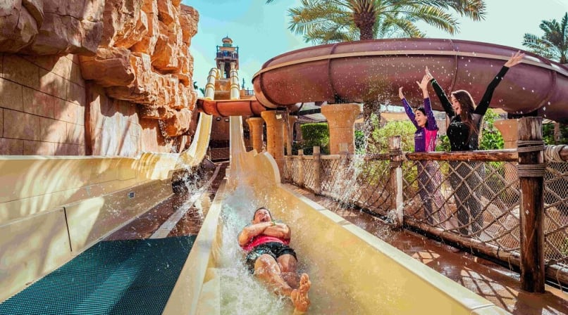 Get ready for an epic family day out in Dubai! Dive into the exhilarating slides of Wild Wadi Water Park, then step into a world of superheroes, dinosaurs, and cartoons at IMG Worlds of Adventure.