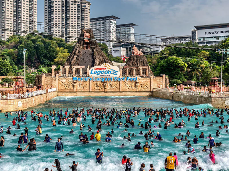 Sunway Lagoon, расположенный более чем в 20 км от города Куала-Лумпур, имеет самый большой в мире бассейн с волнами и впечатляющий бассейн площадью 139 800 кв. футов, где гости могут заниматься серфингом. Здесь также находится самый большой в мире искусственный пляж, где можно полностью насладиться серфингом и пляжем.