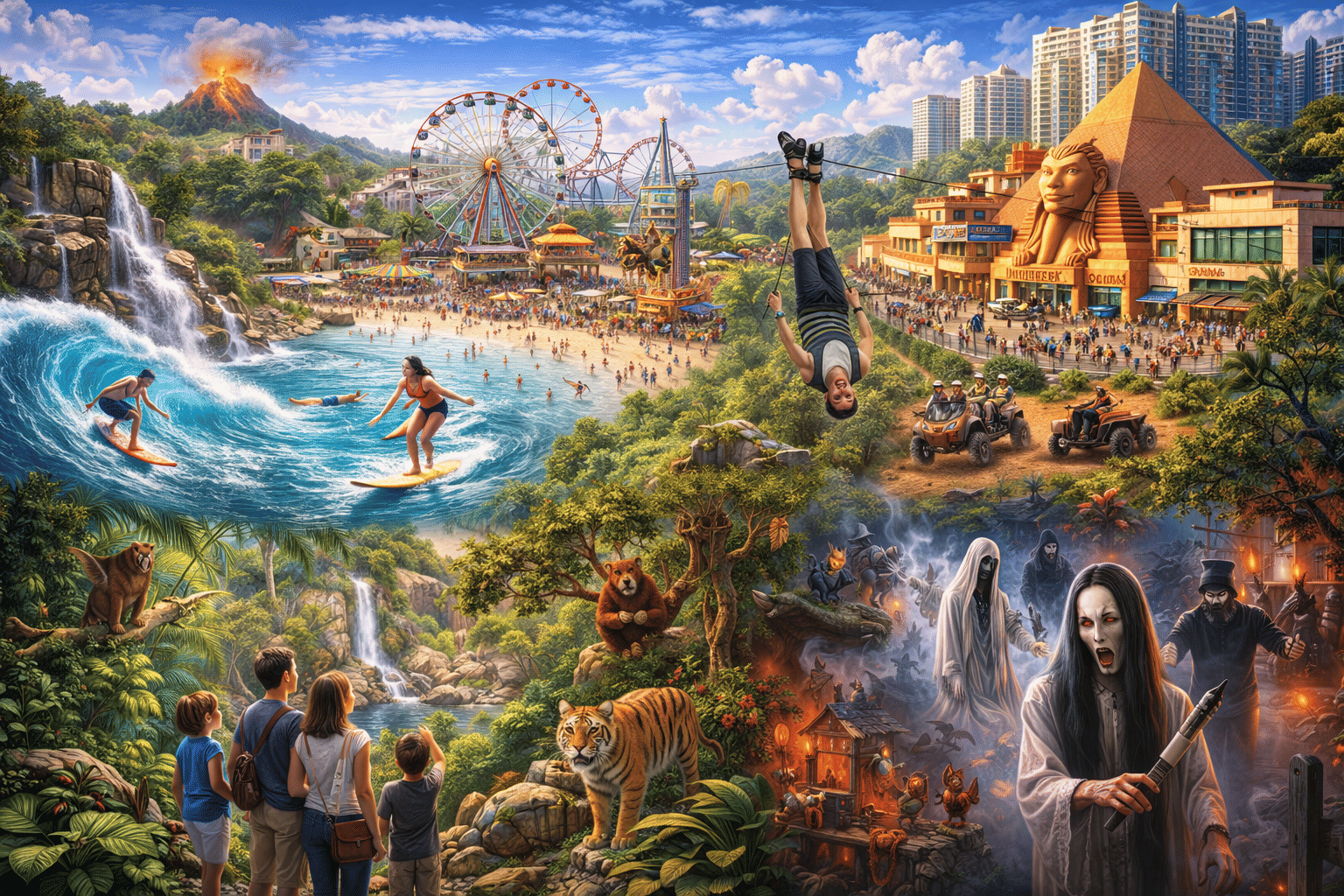 Ваш тур будет включать 6 парков: парк экстрима, парк дикой природы, парк криков, аквапарк, затерянную лагуну Nickelodeon и аквапарк