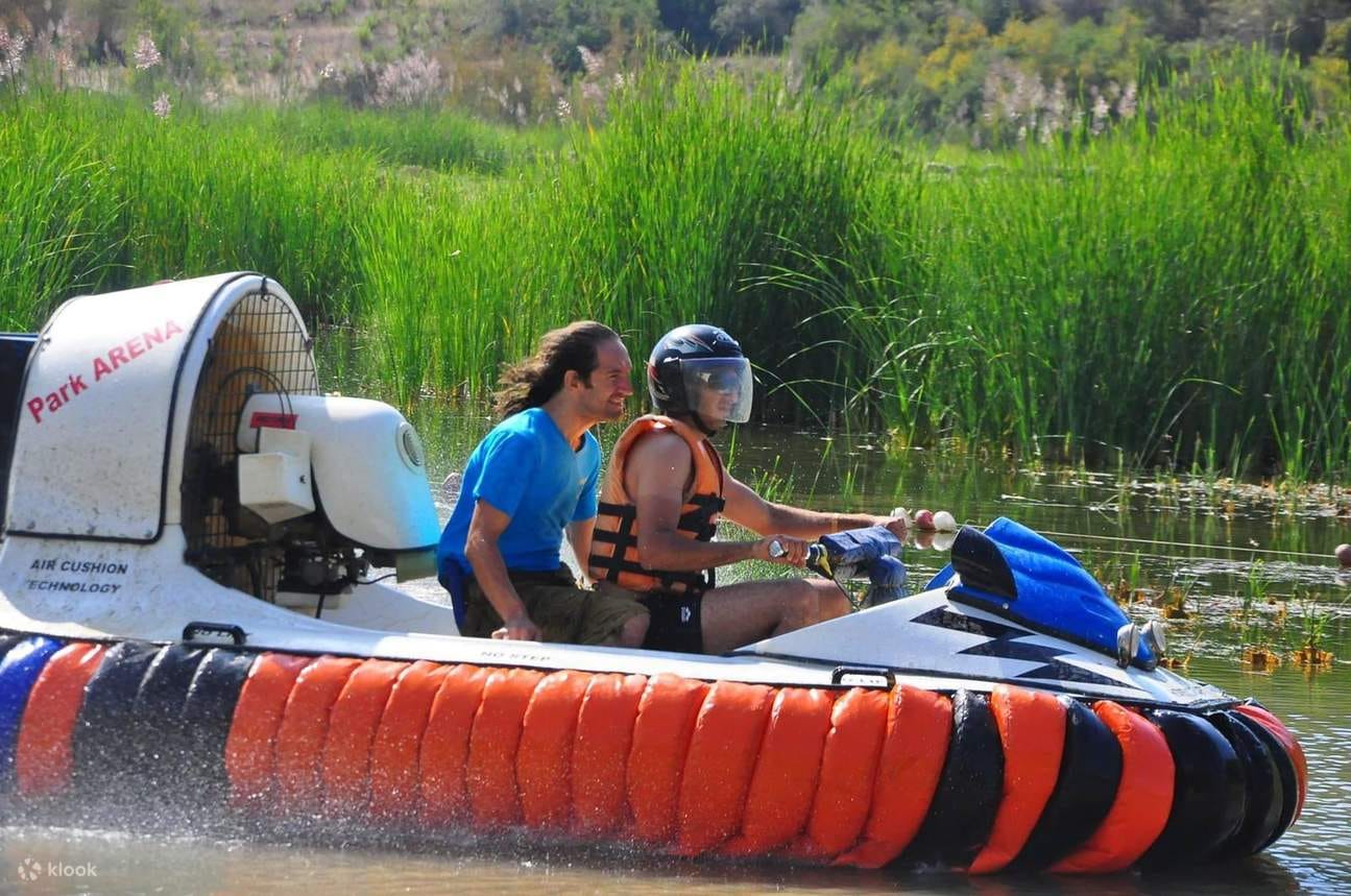 The adventure begins with a comprehensive safety briefing and an introduction to the hovercraft, ensuring you're comfortable and prepared for the ride. Once you're ready, hop on and feel the exhilarating thrill of floating above the surface! Unlike traditional boats, the hovercraft moves smoothly and seamlessly over both water and sand, providing a truly unique and dynamic sensation.