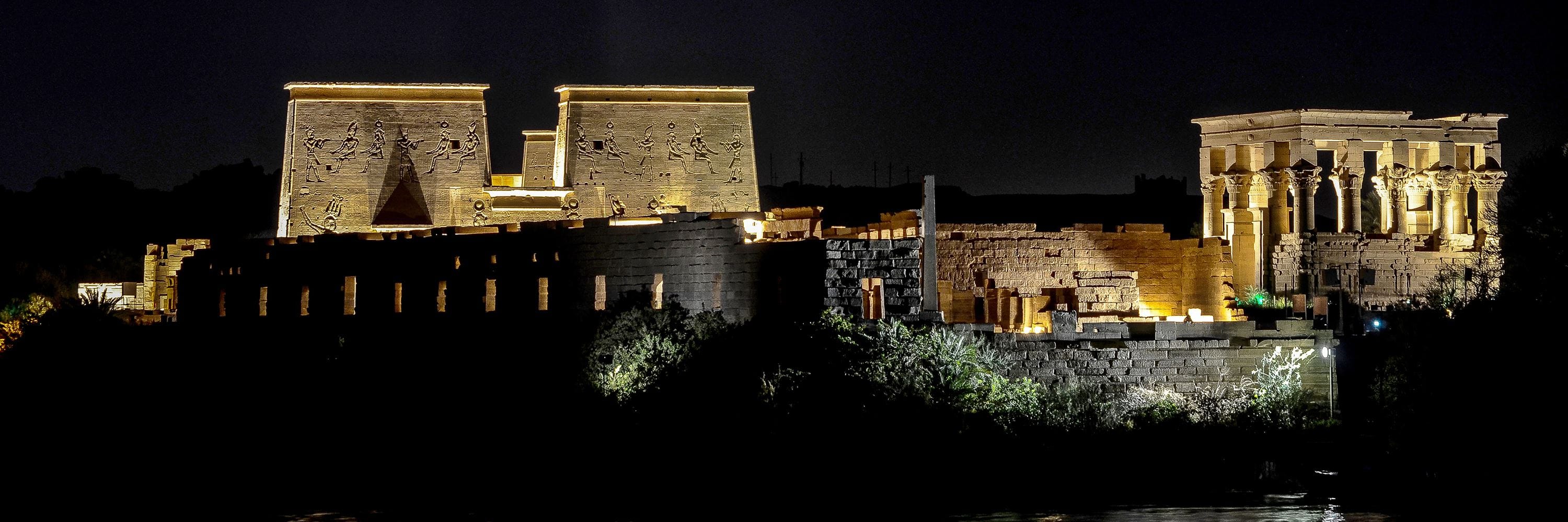 Experience the magic of ancient Egypt come alive at night with H&EM Hospitality Services' private tour to the spectacular Sound and Light Show at Philae Temple in Aswan.