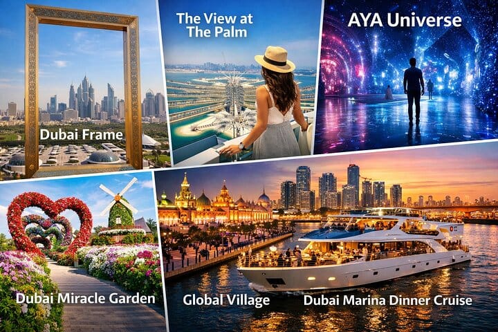 Explore the wonders of Dubai at your own pace with a flexible admission-only ticket package. This unique offering allows you to visit iconic landmarks like the Dubai Frame and The View at The Palm, enjoy immersive experiences at AYA Universe, and revel in the beauty of the Dubai Miracle Garden. Choose from curated combos that suit your interests, whether you're a first-time visitor or a family looking for cultural experiences. Enjoy guaranteed entry to the top attractions without the hassle of transportation, providing a stress-free adventure in this vibrant city.