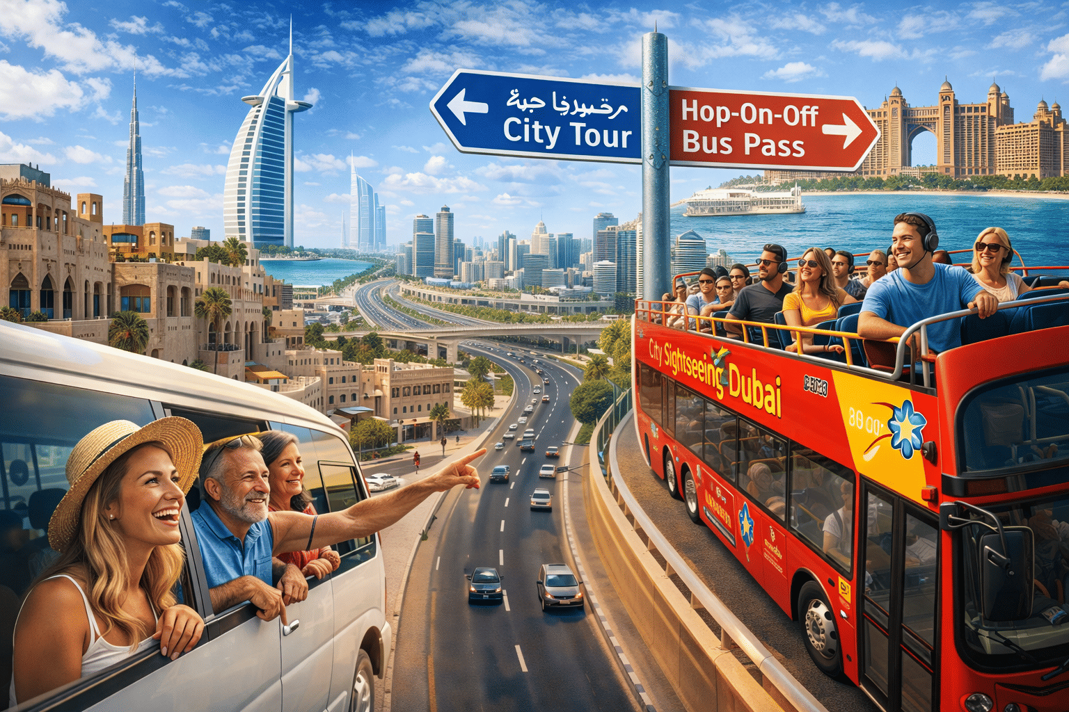 Experience the best of Dubai with two incredible tour options: immerse yourself in the city's iconic landmarks and rich history on our curated Classic City Tour, or explore at your own pace with the freedom of the Big Bus Hop-On, Hop-Off Tour!