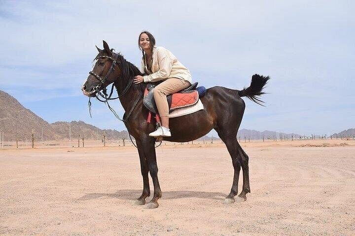 Enjoy a 2-hour horseback riding adventure in Sharm El Sheikh, exploring the stunning Sinai desert or riding along the Red Sea coastline. Suitable for all experience levels, this guided tour offers a perfect mix of relaxation and adventure with professional instructors ensuring a safe and enjoyable experience. Discover breathtaking landscapes and a unique, peaceful way to experience Egypt away from the crowds.