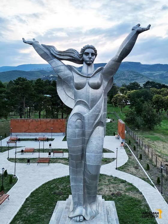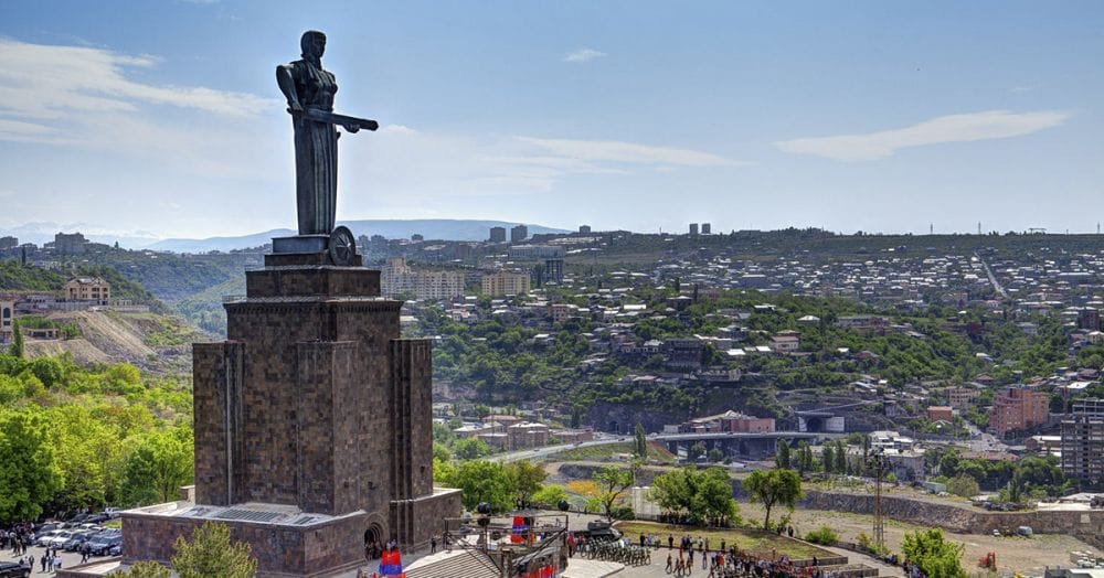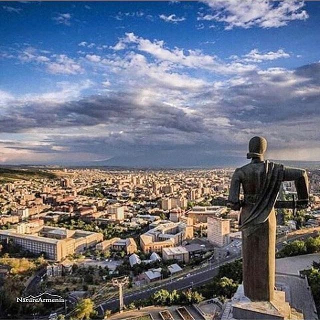 the entire downtown from above. The monument to Mother Armenia is standing tall in the park carefully